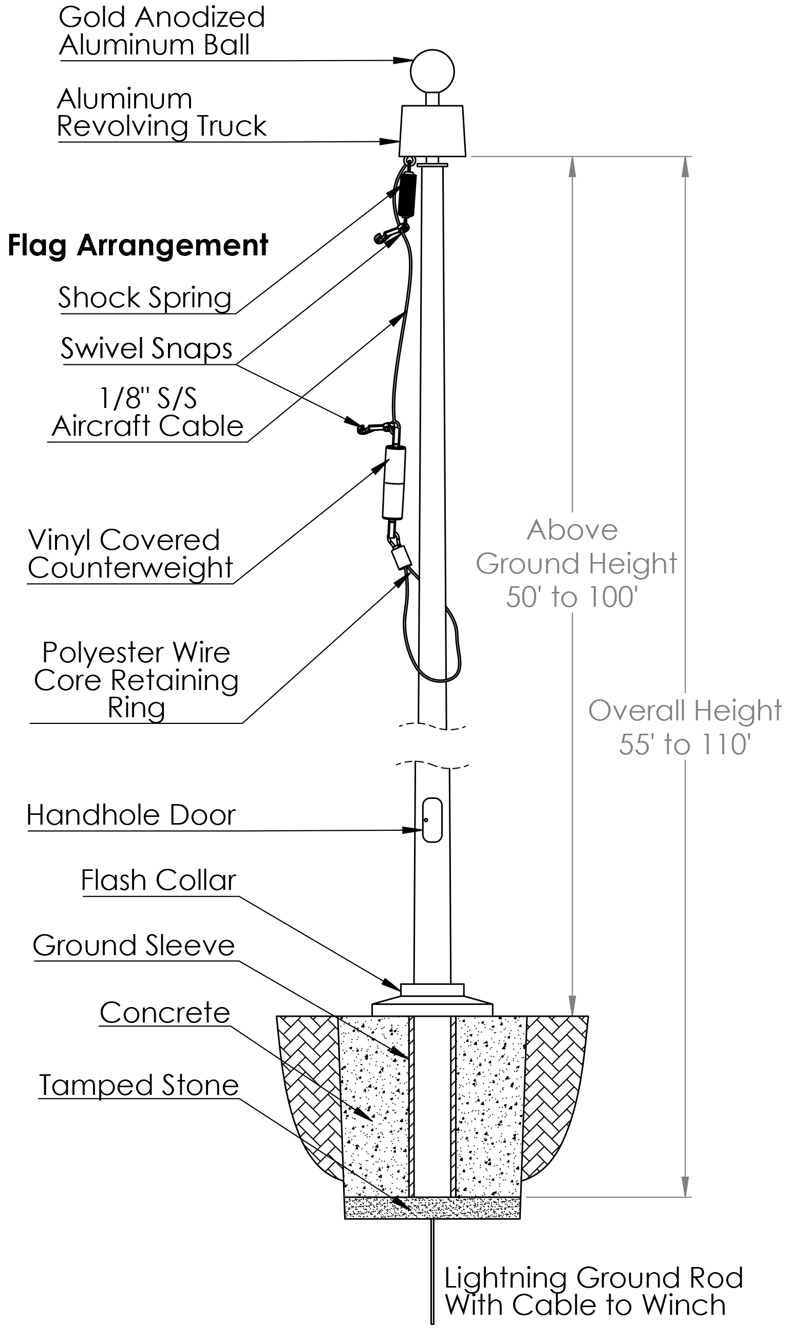 | Flag Arrangement | 1-8’x12′ | 1-10’x15′ | 1-12’x18′ | 1-12’x18′ |