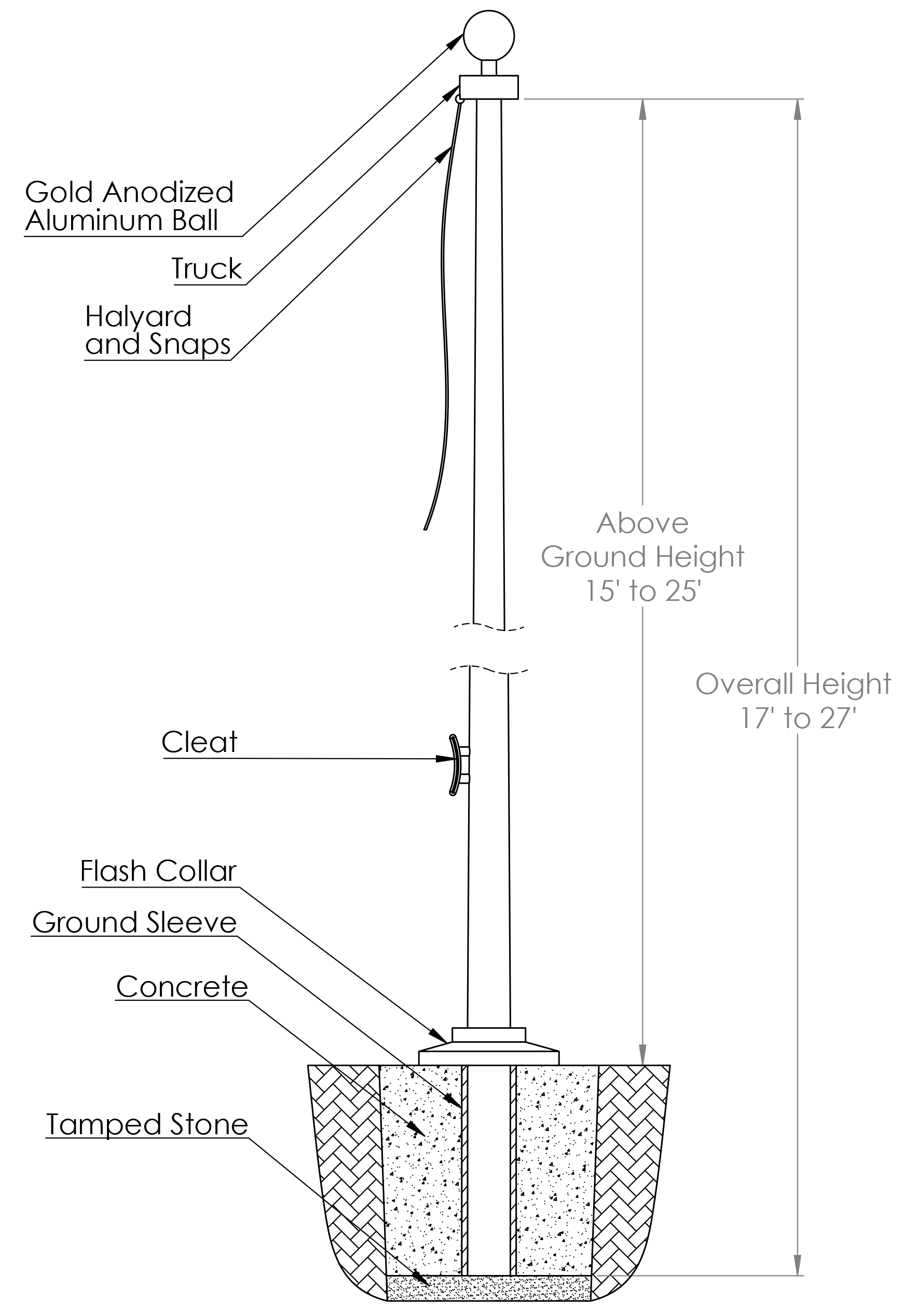 | Overall Height | 17′ | 22′ | 27′ |