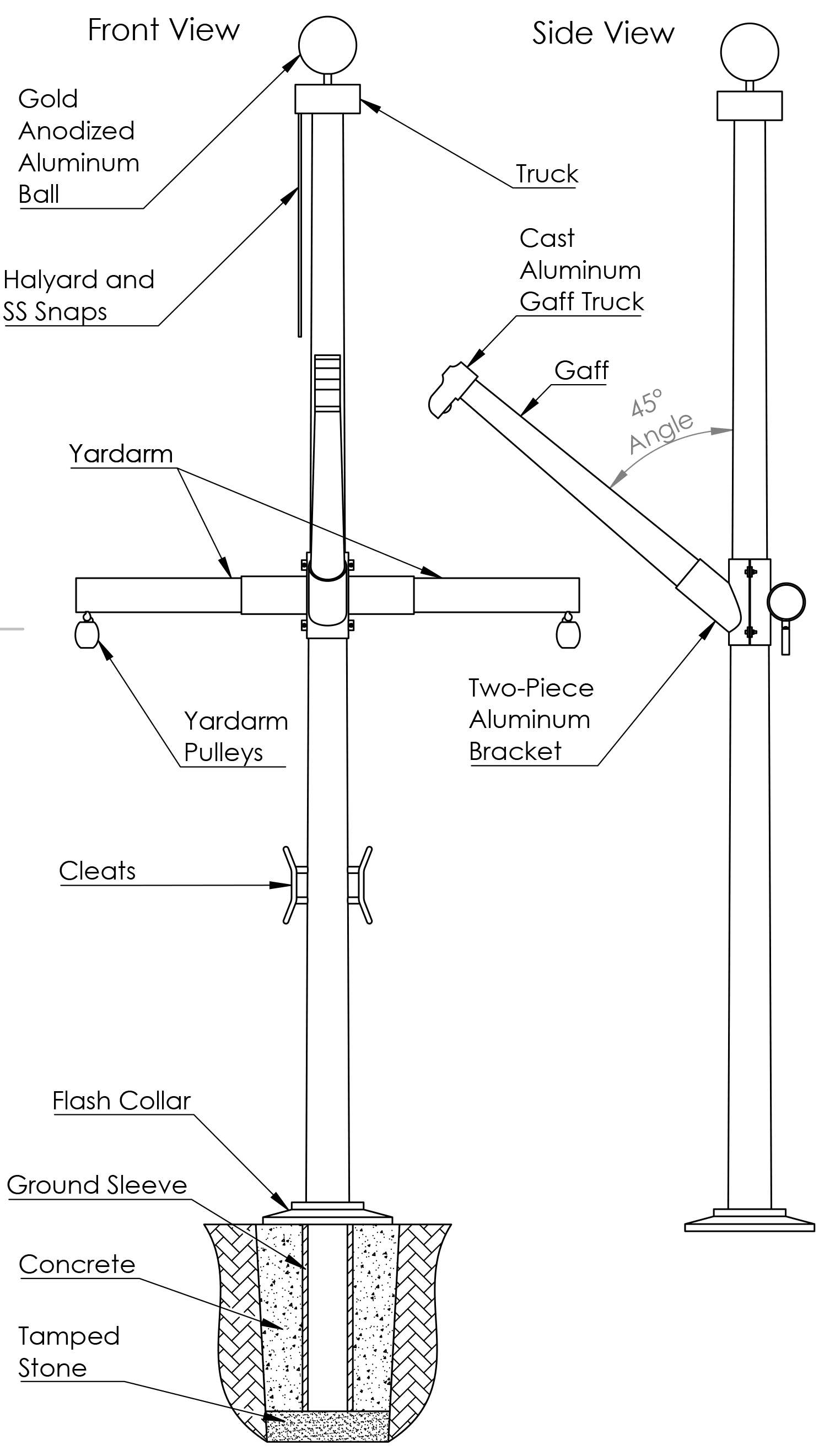 Yardarm Bracket & Stick (pre-assembled with S/S Eye-Bolts & Pulleys)