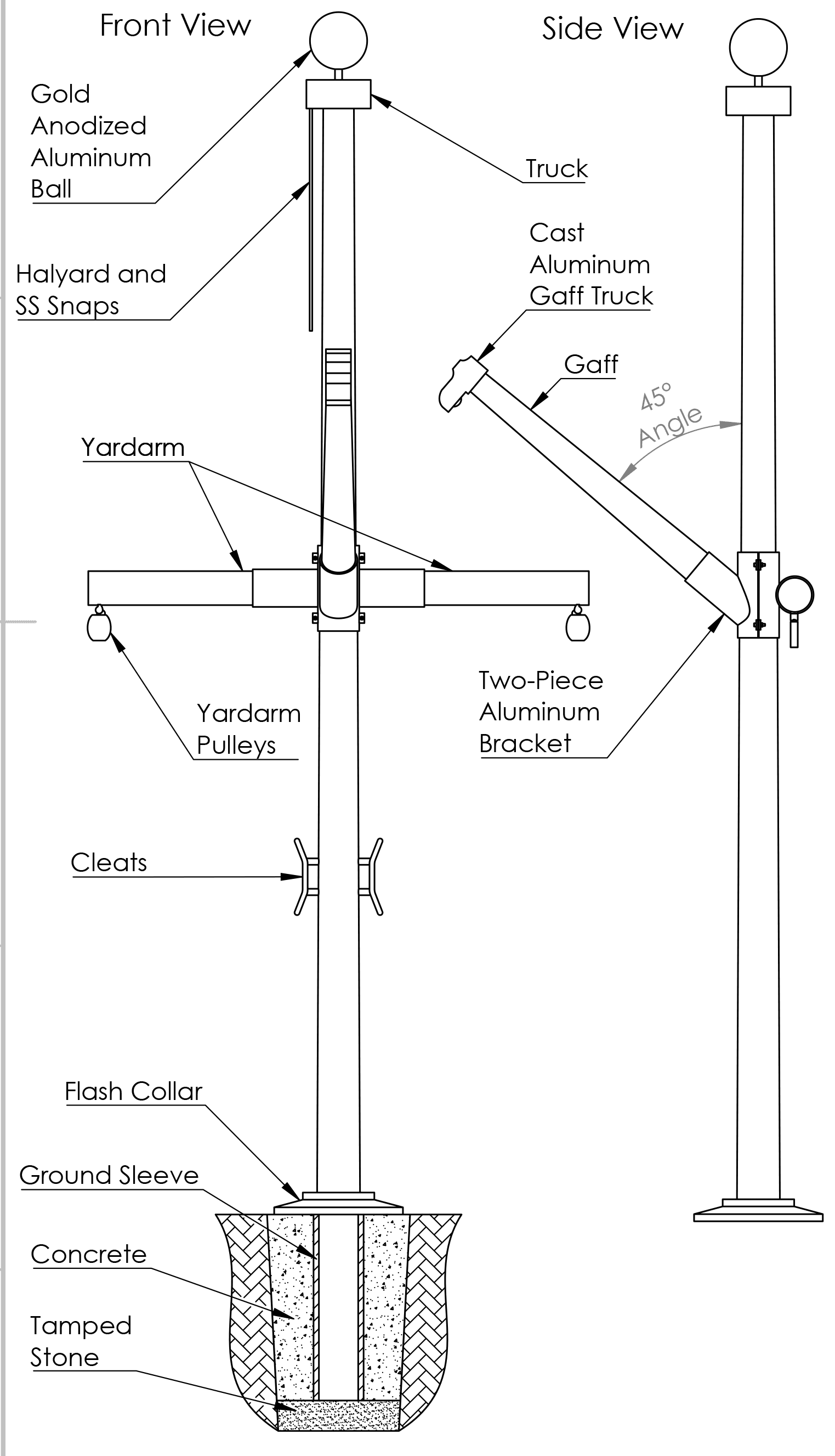 Flagpole with Yardarm/Gaff 25′ – 40′